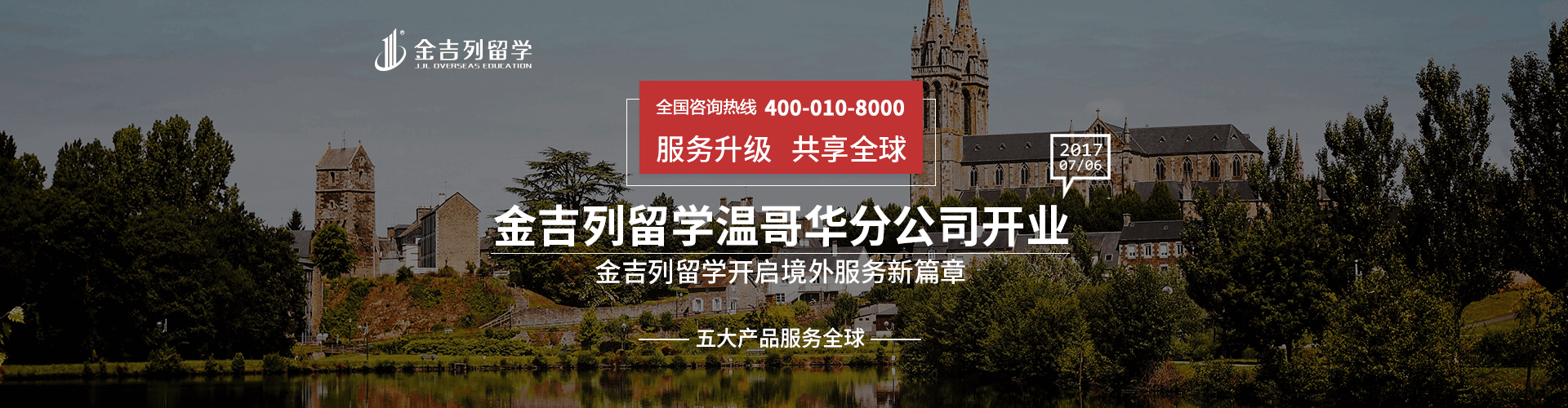 2017年7月,金吉列溫哥華公司正式成立,這是金吉列留學(xué)實(shí)施國(guó)際化戰(zhàn)略,成為全球教育集團(tuán)的重要里程碑。金吉列溫哥華公司成立后,將從英語培訓(xùn)課程、文化課補(bǔ)習(xí),到高端名校申請(qǐng)、各類簽證服務(wù)、升轉(zhuǎn)學(xué)規(guī)劃、寄宿家庭安排、國(guó)際學(xué)生報(bào)稅、專車翻譯服務(wù)、實(shí)習(xí)就業(yè)推薦、移民辦理等方面為客戶提供服務(wù),這意味著金吉列留學(xué)將全方位一體化地跟進(jìn)學(xué)生學(xué)習(xí)、生活過程中的一切事宜。
